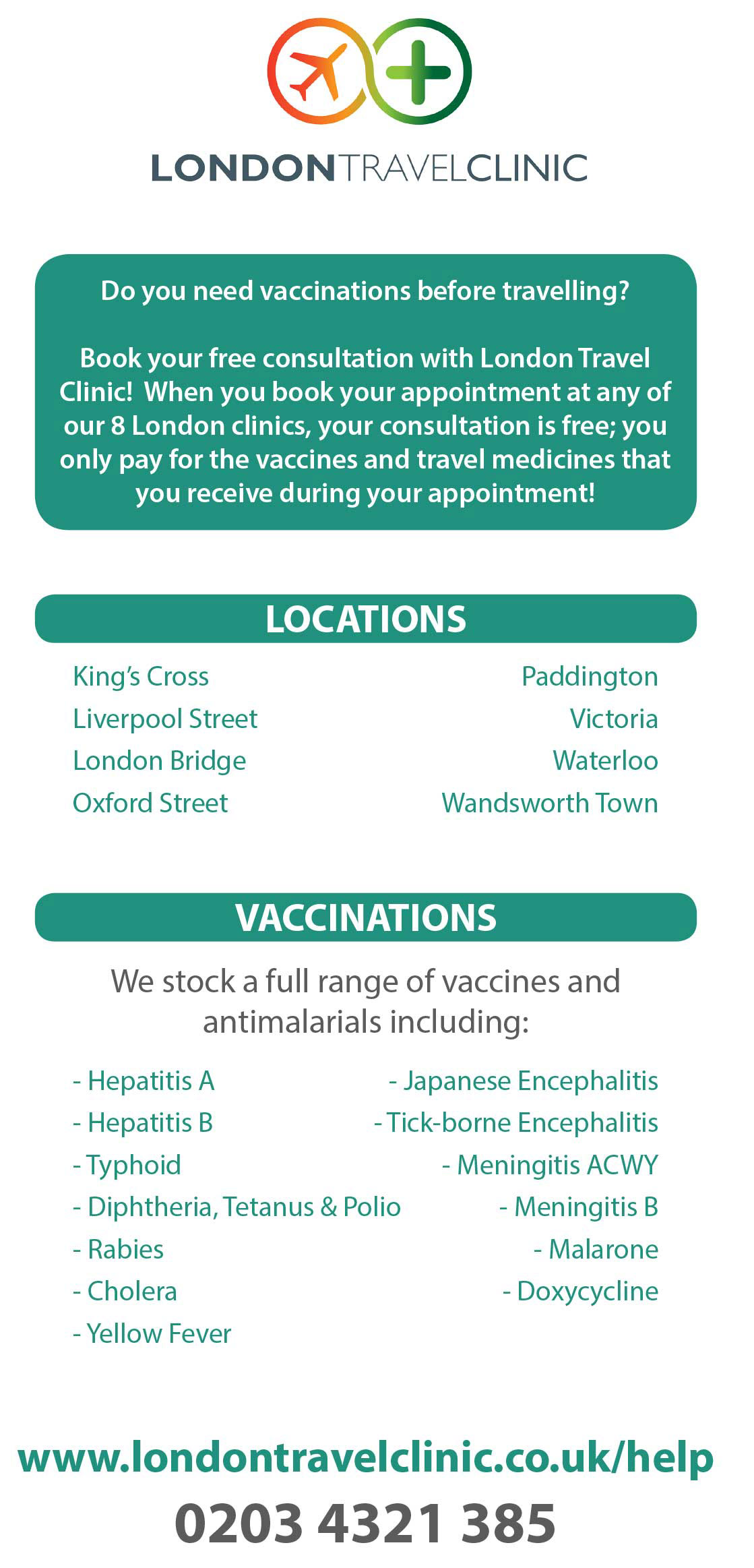 Flyer design for the London Travel Clinic. Since 2015, this flyer still remains in